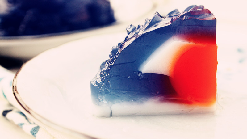 外层:水375克,糖60克,燕菜粉1tbsp,适量蓝花
